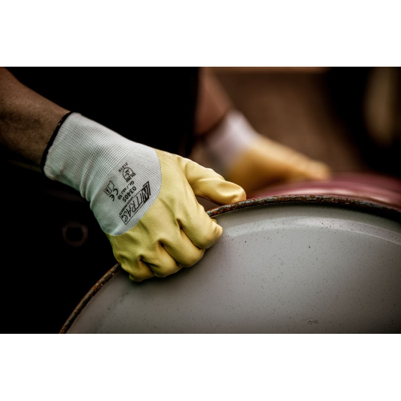 NITRAS nitrile gloves, polyester, white, nitrile coating, yellow (colour code: 4311), 3/4-coated, knitted wrist