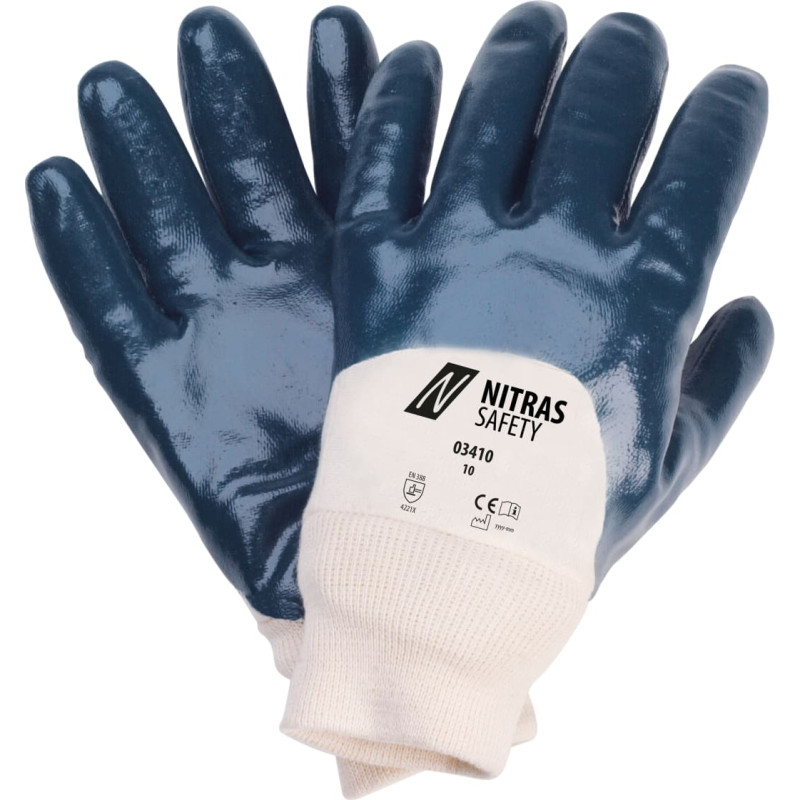 NITRAS nitrile gloves, cotton jersey, natural colour, nitrile coating, blue (colour code: 2216), 3/4-coated, knitted wrist