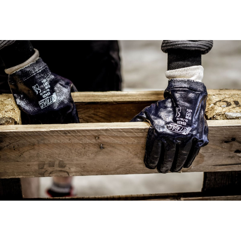 NITRAS nitrile gloves, cotton jersey, natural colour, nitrile coating, blue (colour code: 2200), fully coated, knitted wrist