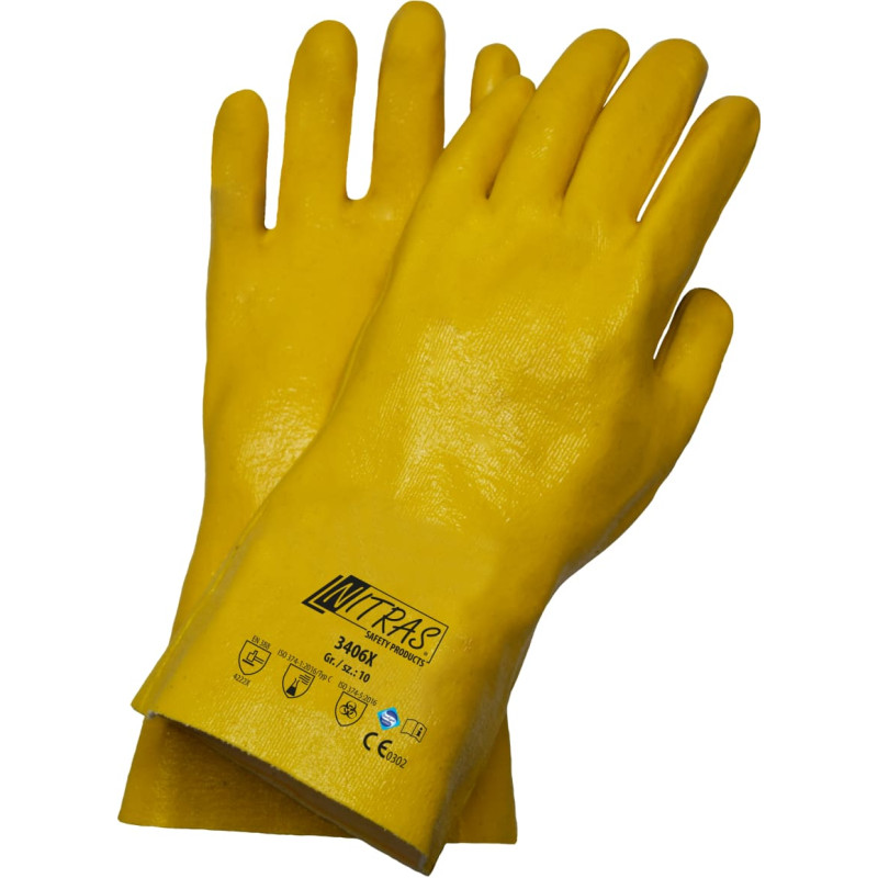 Nitras ķīmiskie aizsargcimdi, dzelteni, dabīgā krāsā/dzeltens, EN 388, EN ISO 374