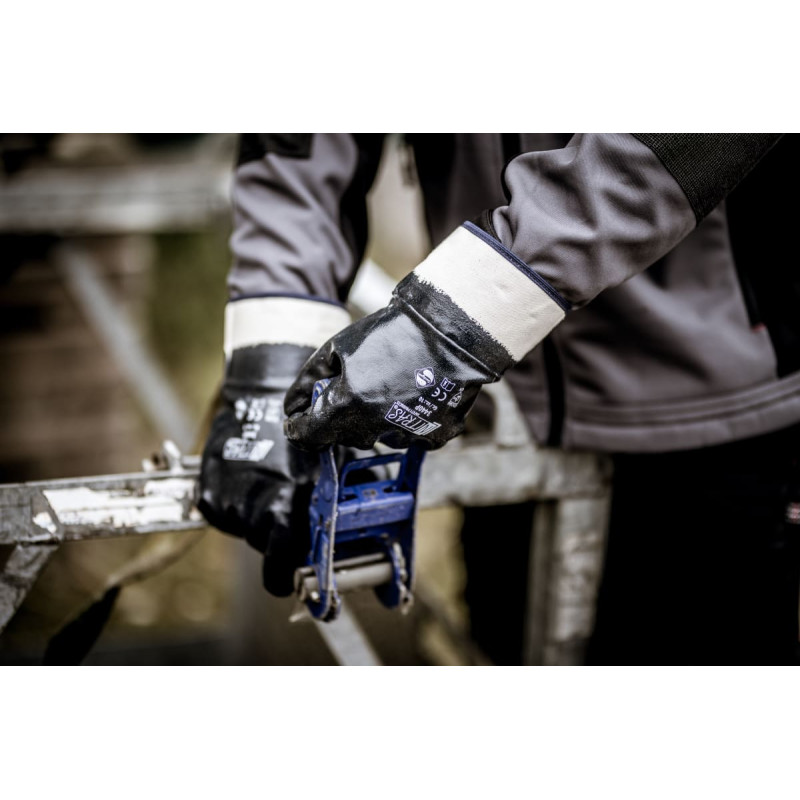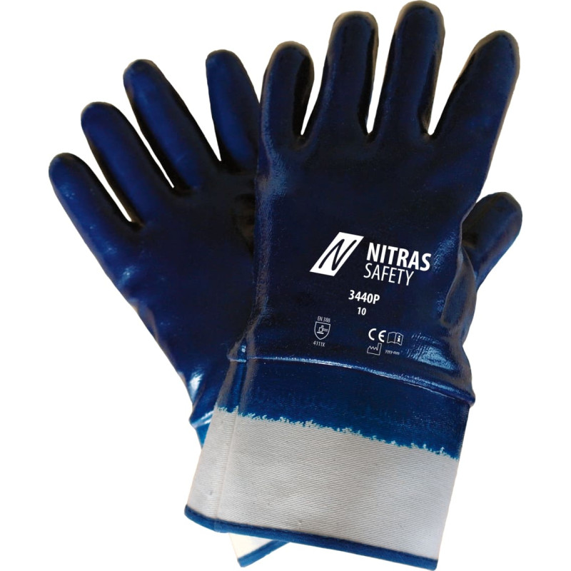 NITRAS nitrile gloves, cotton jersey, white, bleached, nitrile coating, blue, fully coated, canvas cuff, very soft, perfect wearing comfort, premium-quality