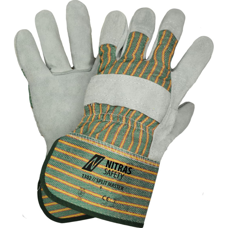 Nitras SPLIT MASTER, govs šķeltas ādas cimdi, zaļa / sarkana / dzeltensvītra / pelēka, EN 389