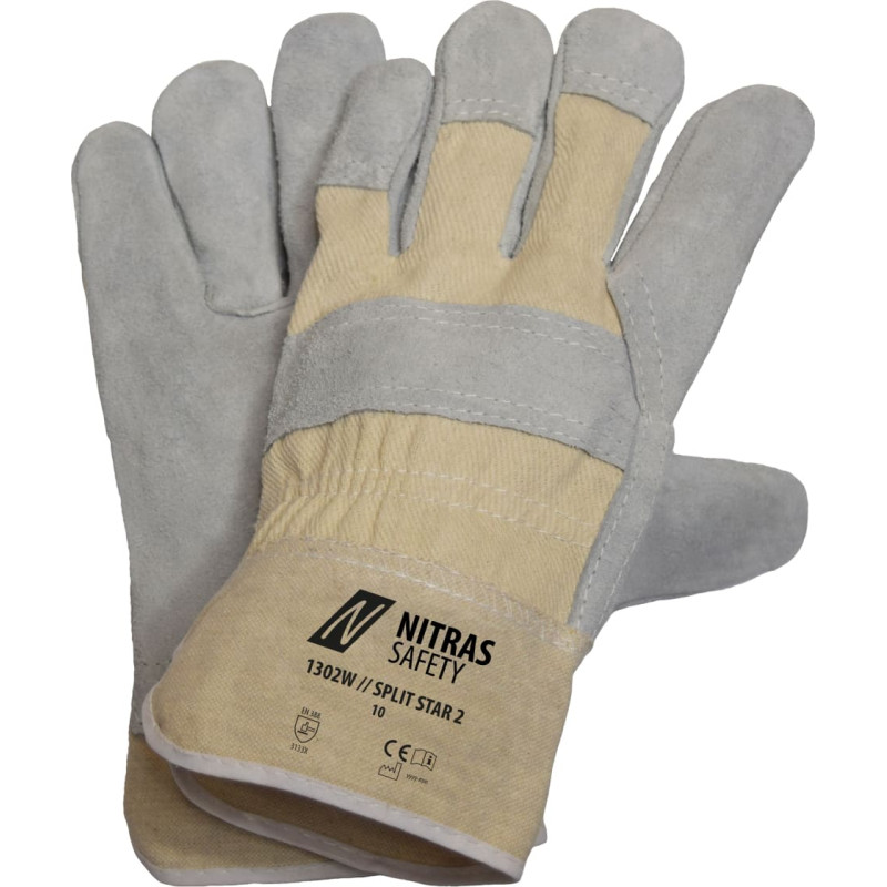 Nitras SPLIT STAR 2, govs šķeltas ādas cimdi, dabīgā krāsa / pelēks, EN 388