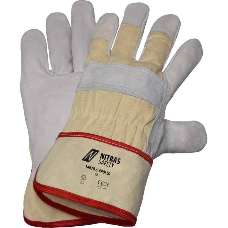 Nitras APOLLO, govs graudu ādas cimdi, dabīgā krāsa / pelēks, EN 388