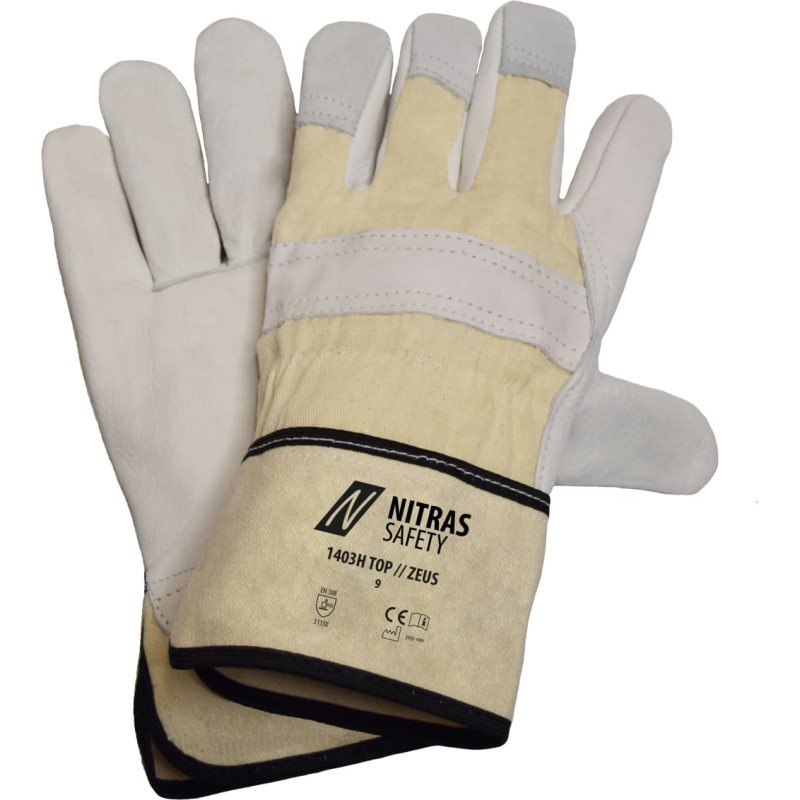 Nitras ZEUS, govs graudu ādas cimdi, dabīgā krāsa / pelēks, EN 389
