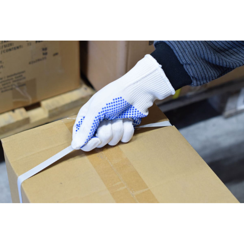 NITRAS knitted gloves, nylon / cotton, white, PVC dots, blue (colour code: 1122), dotted on palm, knitted wrist