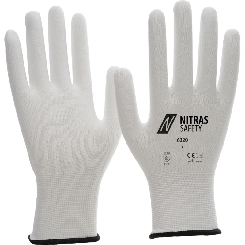 NITRAS nylon gloves, white (colour code: 1100), uncoated, knitted wrist, particularly sensitive, perfect for working with small parts, very good tactile sensitivity, breathable, PPE risk category II