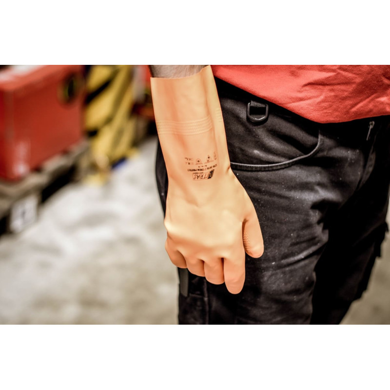 NITRAS CHEM PROTECT, chemical protective gloves, latex, orange (colour code: 4400), length 30 cm, flock lined, protection against micro-organisms and bacteria, for food contact