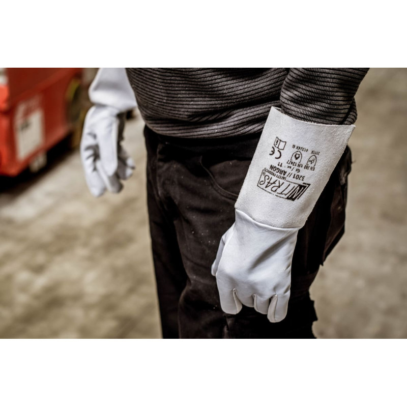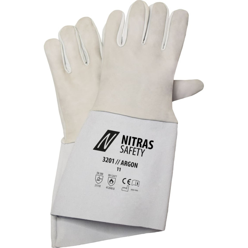 NITRAS ARGON, welding gloves, grey, split leather cuff, grey (colour code: 1200), length 35 cm, inserted thumb, protection against contact heat (100° C, 15 seconds)