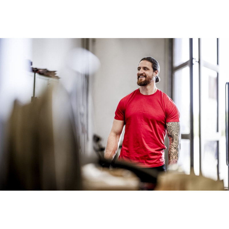 NITRAS MOTION TEX LIGHT, T-shirt, red (color code: 6000), short sleeve, 145 g/m², comfortable to wear thanks to soft material, single jersey, carded cotton, ribbed round neck with neckband in the same color, robust double seams on hem and sleeves, without side seam, particularly soft and smooth, suitable for promotional purposes, OEKO-TEX STANDARD 100, regular fit