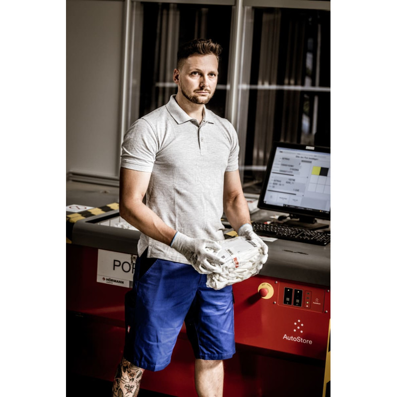 MOTION TEX LIGHT, polo shirt, light grey (colour code: 1300), short sleeve, 200 gsm, fine-mesh Piqué, combed cotton, preshrunk, enzyme washed, knitted collar, knitted cuffs, three-button placket with buttons of same colour, double-stitched seam on hem, extended back, double bartacked side slits, very soft and lightweight, breathable, UV protection UPF 40+ (except of white and light grey), OEKO-TEX STANDARD 100, Regular Fit