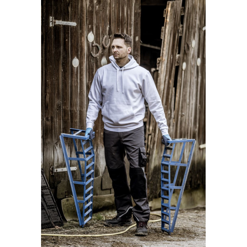 NITRAS MOTION TEX LIGHT, hooded sweater, white (colour code: 1100), 300 g/sqm, breathable, high wearing comfort thanks to roughened and soft inside, knitted cuffs and waistband for an optimal fit, combed cotton, pre-shrunk, enzyme washed, straight cut, sporty design, hood with drawstring of same colour, durable double-stitched seams on waist, sleeves, hood and kangaroo pocket, OEKO-TEX STANDARD 100, Regular Fit