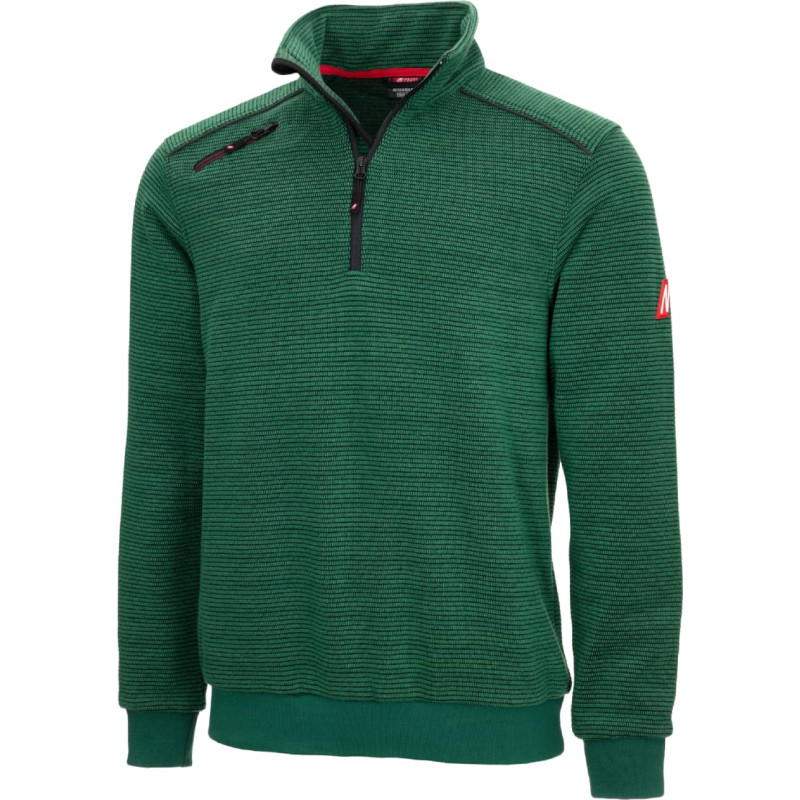 NITRAS MOTION TEX PLUS, pullover, green (colour code: 3000), 400 g/sqm, breathable, pleasant wearing comfort thanks to roughened and very soft inside, knitted cuffs and waist for optimal fit, keeps you warm in colder temperatures due to the densely processed material, soft stand-up collar, colour-coordinated YKK-zipper up to the chest with chin protection and wind stopper inside, reflective piping at front and back of shoulder for better visibility, practical shoulder back, Regular Fit