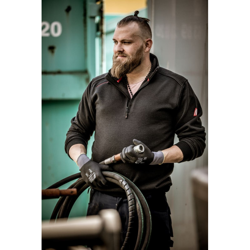 NITRAS MOTION TEX PLUS, pullover, black (colour code: 1000), 400 g/sqm, breathable, pleasant wearing comfort thanks to roughened and very soft inside, knitted cuffs and waist for optimal fit, keeps you warm in colder temperatures due to the densely processed material, soft stand-up collar, colour-coordinated YKK-zipper up to the chest with chin protection and wind stopper inside, reflective piping at front and back of shoulder for better visibility, practical shoulder back, Regular Fit