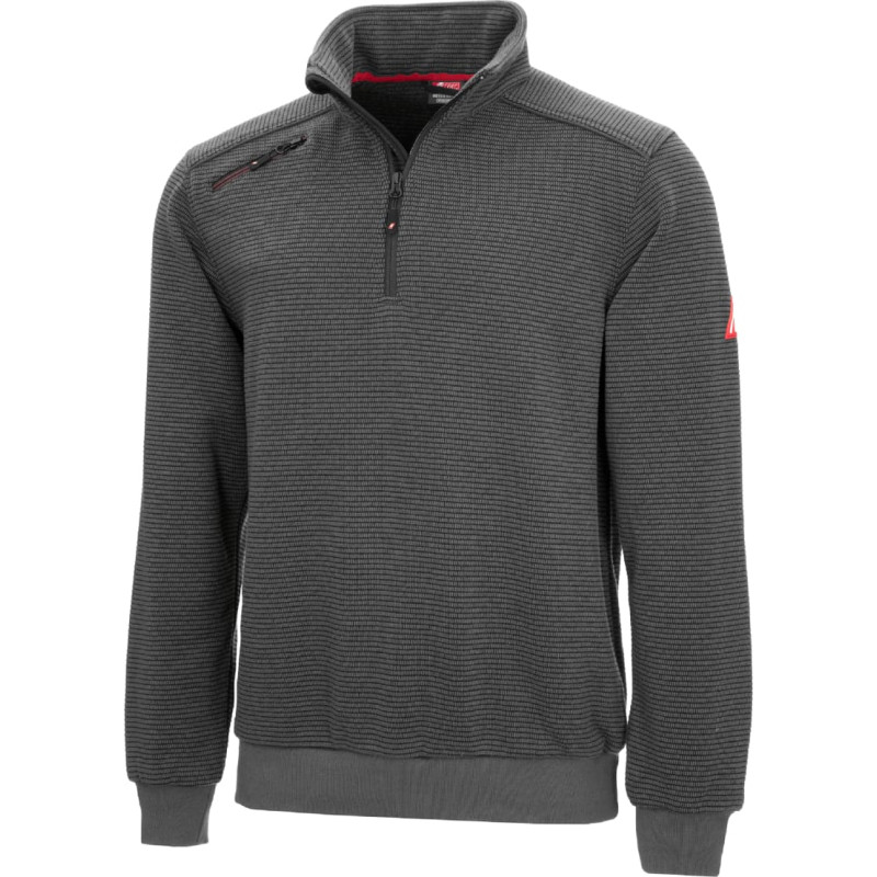 NITRAS MOTION TEX PLUS, pullover, gray (colour code: 1200), 400 g/sqm, breathable, pleasant wearing comfort thanks to roughened and very soft inside, knitted cuffs and waist for optimal fit, keeps you warm in colder temperatures due to the densely processed material, soft stand-up collar, colour-coordinated YKK-zipper up to the chest with chin protection and wind stopper inside, reflective piping at front and back of shoulder for better visibility, practical shoulder back, Regular Fit