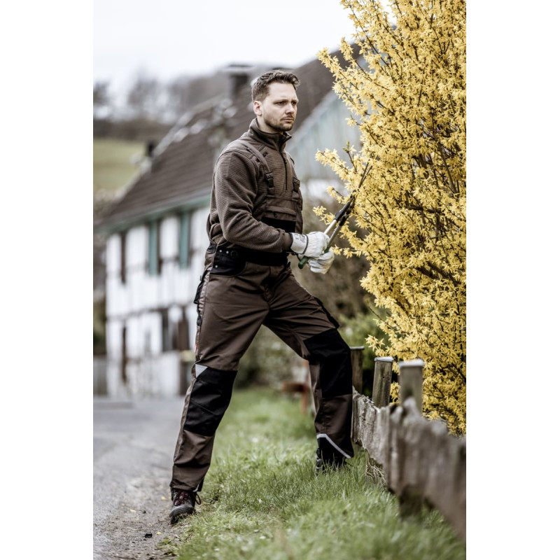 NITRAS MOTION TEX PLUS, pullover, brown (colour code: 5000), 400 g/sqm, breathable, pleasant wearing comfort thanks to roughened and very soft inside, knitted cuffs and waist for optimal fit, keeps you warm in colder temperatures due to the densely processed material, soft stand-up collar, colour-coordinated YKK-zipper up to the chest with chin protection and wind stopper inside, reflective piping at front and back of shoulder for better visibility, practical shoulder back, Regular Fit