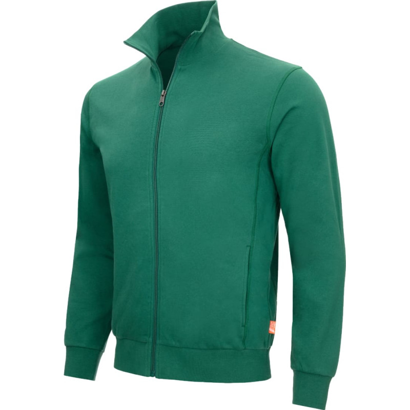 NITRAS MOTION TEX LIGHT, sweat jacket, green (colour code: 3000), 300 g / sqm, high wearing comfort thanks to soft and roughened inside, combed cotton, pre-shrunk, enzyme washed, ribbed stand-up collar, cuffs and waistband, two side pockets, continious YKK-zipper of same colour, OEKO-TEX STANDARD 100, Regular Fit