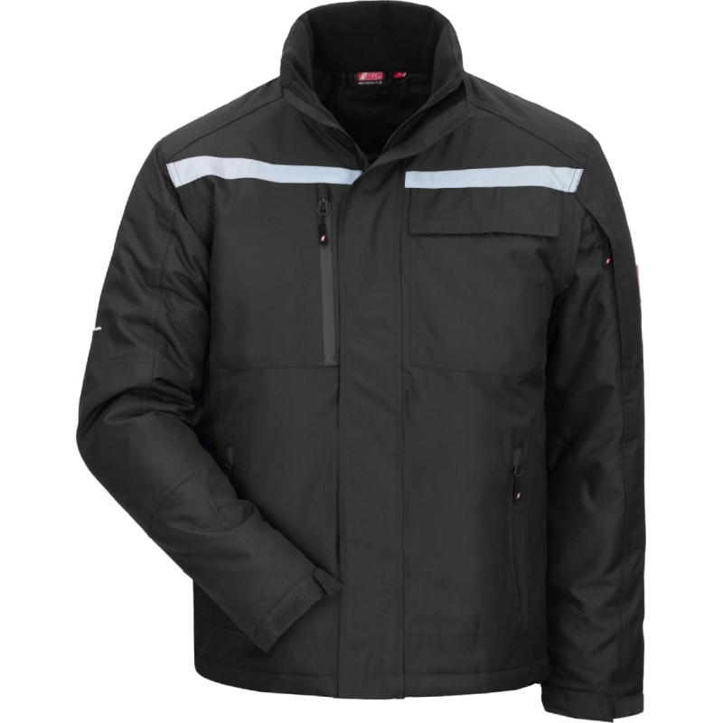 NITRAS MOTION TEX PLUS, parka, black (colour code: 1000), 300 g/sqm, high wearing comfort thanks to extended back, wind resistant and waterproof properties due to welded seams, adjustable cuffs with hook and loop fastener and drawstring waist for optimal fit, warming lining,reinforced elbows for high resistance, reflective elements for better visibility, pleasantly soft fleece stand-up collar, continuous YKK-zipper with wind stopper inside and outside, two chest and side pockets each, inside and sleeve pocket, chest pocket with inside loop for identity card holder, rollable hood with drawstring, wristlet for cold temperatures, internal access on the back for finishing, complete jacket: hydrostatic head: 2,000 mmH2O, Comfort Fit