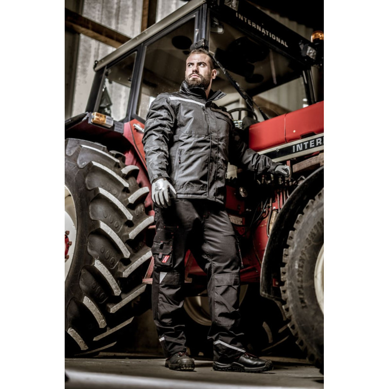 NITRAS MOTION TEX PLUS, parka, black (colour code: 1000), 300 g/sqm, high wearing comfort thanks to extended back, wind resistant and waterproof properties due to welded seams, adjustable cuffs with hook and loop fastener and drawstring waist for optimal fit, warming lining,reinforced elbows for high resistance, reflective elements for better visibility, pleasantly soft fleece stand-up collar, continuous YKK-zipper with wind stopper inside and outside, two chest and side pockets each, inside and sleeve pocket, chest pocket with inside loop for identity card holder, rollable hood with drawstring, wristlet for cold temperatures, internal access on the back for finishing, complete jacket: hydrostatic head: 2,000 mmH2O, Comfort Fit