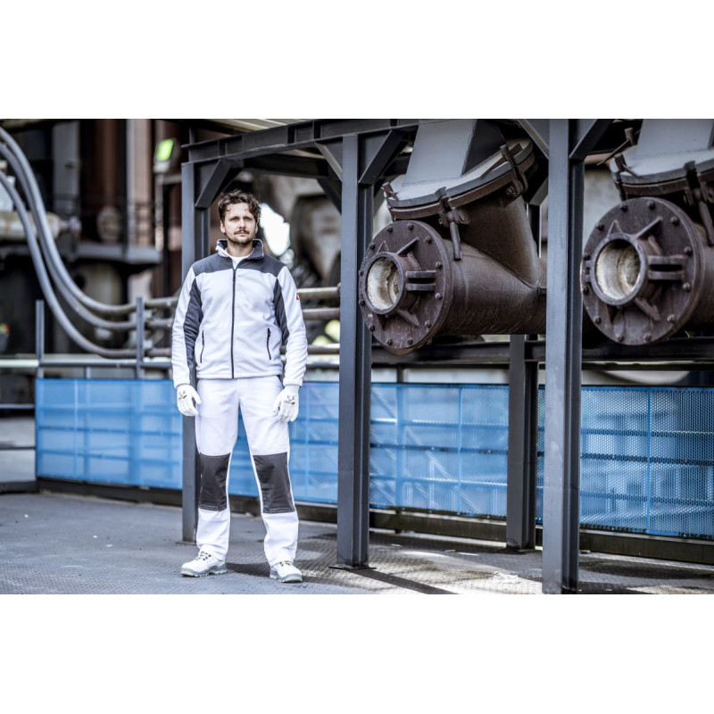 NITRAS MOTION TEX PLUS, fleece jacket, white / grey (colour code: 1112), 300 g/sqm, high wearing comfort thanks to very soft and easy-care anti-pilling fleece, elastics at the cuffs and drawstring waist for optimal fit, good heat insulation thanks to dense processing of material, non-scratchy stand-up collar, continuous and colour-coordinated YKK-zipper with chin protection and wind stopper inside, side pockets with zipper, Regular Fit