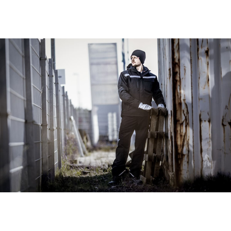 NITRAS MOTION TEX PLUS, winter jacket, black (colour code: 1000), 340 g/sqm, high wearing comfort thanks to soft softshell material with water-repellent and wind resistant properties and extended back, adjustable cuffs with hook and loop fastener and drawstring waist for optimal fit, soft and warming winter lining,reinforced elbows for high resistance, reflective elements for better visibility, stand-up collar, continuous YKK-zipper with chin protection and wind stopper inside and outside, inside, chest and side pockets, wristlet for cold temperatures, hood with drawstring for fixation, shell fabric: hydrostatic head: 8,000 mmH2O / breathability: 3,500 g/sqm/24h, Comfort Fit