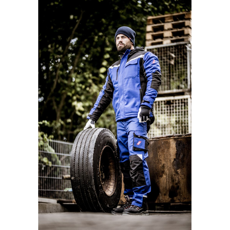 NITRAS MOTION TEX PLUS, winter jacket, royal blue / black (colour code: 2010), 340 g/sqm, high wearing comfort thanks to soft softshell material with water-repellent and wind resistant properties and extended back, adjustable cuffs with hook and loop fastener and drawstring waist for optimal fit, soft and warming winter lining,reinforced elbows for high resistance, reflective elements for better visibility, stand-up collar, continuous YKK-zipper with chin protection and wind stopper inside and outside, inside, chest and side pockets, wristlet for cold temperatures, hood with drawstring for fixation, shell fabric: hydrostatic head: 8,000 mmH2O / breathability: 3,500 g/sqm/24h, Comfort Fit