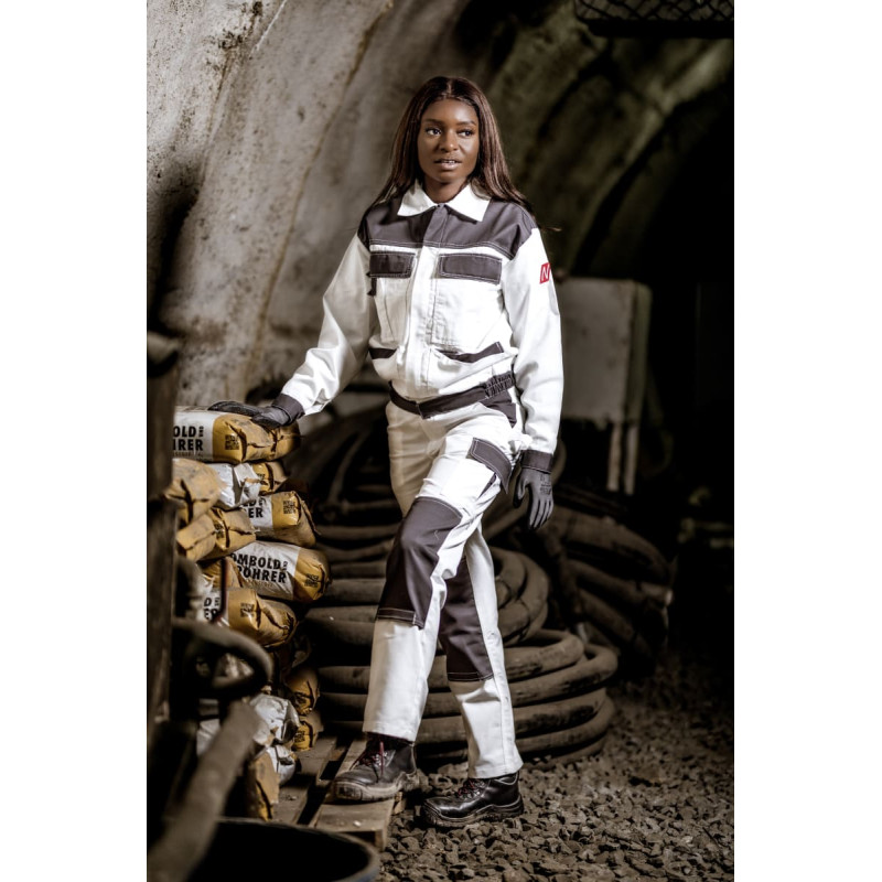 NITRAS MOTION TEX LIGHT, work jacket, white / grey (colour code: 1112), 245 g/sqm, breathable and light-weight material, high wearing comfort, adjustable cuffs with buttons, elastic waist, collar, reinforcements on shoulders, pockets and waist, continuous front zipper with additional push button at the bottom and wind stopper outside, reflective elements for better visibility, practical and functional details: two chest pockets with flaps and additional smartphone pocket, two pen pockets and side pockets, inside pocket, OEKO-TEX STANDARD 100®, Regular Fit