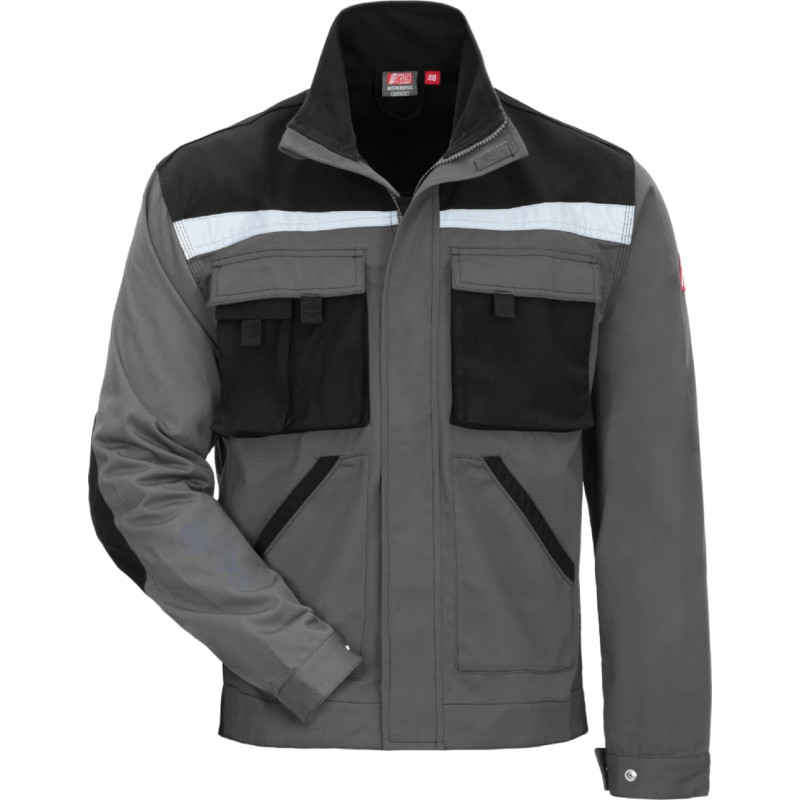 NITRAS MOTION TEX PLUS, work jacket, grey / black (colour code: 1210), 280 g/sqm, breathable material, high wearing comfort, adjustable cuffs with snap buttons, extended back, pleasantly soft fleece stand-up collar, reinforcements on pockets and sleeves as well as shoulders and Canvas reinforcements on elbows and back, durable triple-stitched seams, continuous front zipper with chin protection and wind stopper outside, reflective elements for better visibility, practical and useful extras: two chest pockets with flaps and additional smartphone pocket, two pen pockets, side pockets, inside pocket, OEKO-TEX STANDARD 100®, Comfort Fit