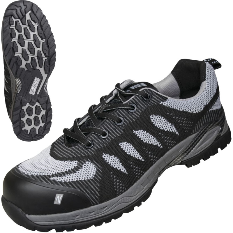 NITRAS PRO STEP, safety shoes, S1P, durable textile, black / grey (colour code: 1012), seamless upper, tough nitrile / EVA outsole, black / grey, fibreglass toe cap, textile perforation resistant midsole, metal-free, premium insock 700C // COMFORT STEP, ergonomically formed, sporty design, highest slip resistance (SRC), width 11, heel lining for easy donning and doffing and heel reinforcement made of robust microfibre, DGUV Rule 112-191-certified, ESD-capable