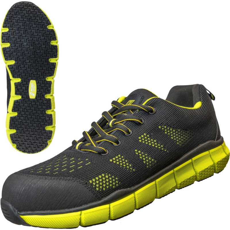 NITRAS SONIC STEP, safety shoes, S1P, durable textile, black / lime, tough EVA / nitrile outsole, black / lime (colour code: 1042), fibreglass toe cap, textile perforation resistant midsole, metal-free, premium COMFORT STEP insock, ergonomically formed, sporty design, highest slip resistance (SRC), width 11, heel lining for easy donning and doffing and heel reinforcement made of robust microfibre, DGUV Rule 112-191-certified, ESD-capable