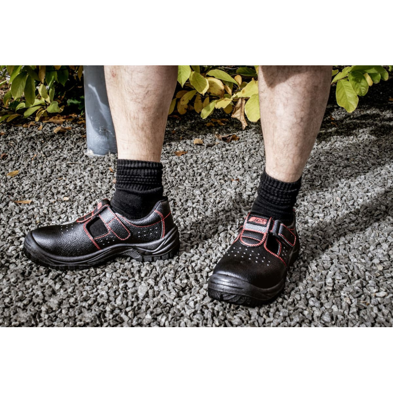NITRAS BASIC STEP SA, S1P safety sandals, durable grain leather, black (colour code: 1000), tough PU outsole, black, steel toe cap, steel perforation resistant midsole, ergonomic insocks, appealing design, flattened heel for a natural rolling movement of the foot, highest slip resistance (SRC), width 11, hook and loop fastener
