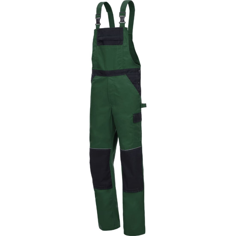 NITRAS MOTION TEX LIGHT, bib pants, green / black (colour code: 3010), 245 g/sqm, breathable and light-weight material, high wearing comfort, elastic waist, reinforcements on leg, knee, back pockets and outside bib pockets, reflective elements for better visibility, practical and functional details: thigh pocket with flap, ruler pocket with additional pocket, knee pockets for protectors with insertion from below, hammer loop, durable clips, elastic straps, OEKO-TEX STANDARD 100®, Regular Fit