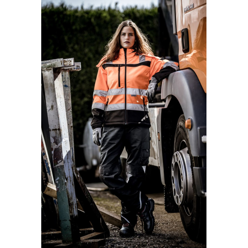 NITRAS MOTION TEX PLUS, long work trousers, black (colour code: 1000), 280 g/sqm, breathable material, high wearing comfort, elastic waist with raised back, reinforcement on back belt loop and reinforcements made of Canvas on back, knee, leg pockets and ankles, durable triple-stitched seams, covered button for product protection (e.g. scratches), reflective elements for better visibility, practical and useful extras: thigh pockets with flaps, ruler pocket with additional pocket, knee pockets for protectors with insertion from above, hammer loop, D-ring, OEKO-TEX STANDARD 100®, Comfort Fit, knee protectors 76K (EN 14404) optionally available