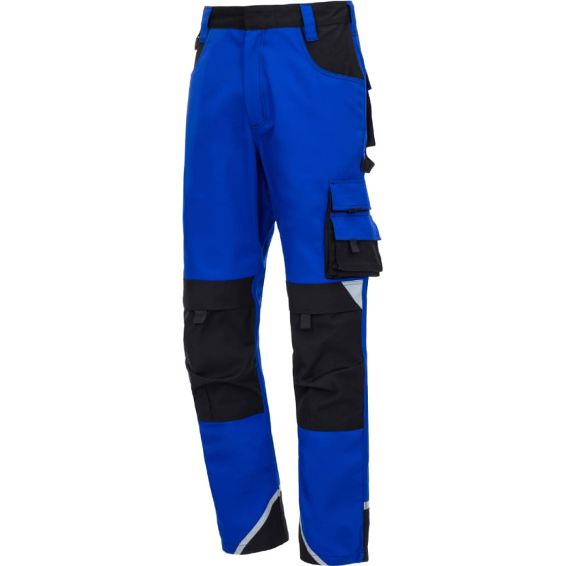 NITRAS MOTION TEX PLUS, long work trousers, royal blue / black (colour code: 2010), 280 g/sqm, breathable material, high wearing comfort, elastic waist with raised back, reinforcement on back belt loop and reinforcements made of Canvas on back, knee, leg pockets and ankles, durable triple-stitched seams, covered button for product protection (e.g. scratches), reflective elements for better visibility, practical and useful extras: thigh pockets with flaps, ruler pocket with additional pocket, knee pockets for protectors with insertion from above, hammer loop, D-ring, OEKO-TEX STANDARD 100®, Comfort Fit, knee protectors 76K (EN 14404) optionally available