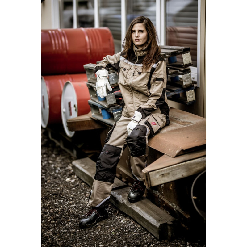 NITRAS MOTION TEX PRO FX, long work trousers, khaki / black (colour code: 5110), 280 g/sqm, breathable material, very high wearing comfort (2-way stretch), elastic waist with raised back, reinforcements on back belt loop and crotch and reinforcements made of CORDURA® on back, knee, leg pockets and ankles, durable triple-stitched seams, covered button for product protection (e.g. scratches), 3M Scotchlite™ Reflective Material for better visibility, versatile and practical equipped: thigh pockets with flaps, ruler pocket, knee pockets for protectors with insertion from above, adjustable hammer loop, D-ring, ID pocket, premium quality, OEKO-TEX STANDARD 100®, Comfort Fit, tool pockets 770P and knee protectors 76K (EN 14404) optionally available