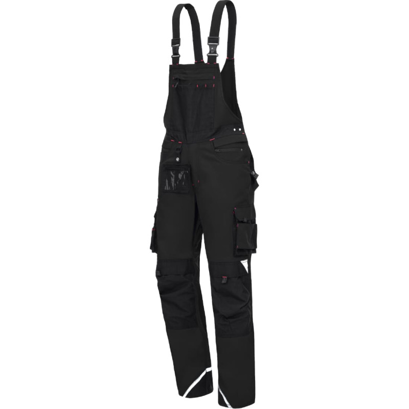 NITRAS MOTION TEX PRO FX, bib pants, black (colour code: 1000), 280 g/sqm, breathable material, very high wearing comfort (2-way stretch), elastic waist, reinforcements in crotch and reinforcements made of CORDURA® on the leg, knee and back pockets as well as outside bib pocket and ankles, durable triple-stitched seams, 3M Scotchlite™ Reflective Material for better visibility, versatile and practical equipped: thigh pockets with flaps, ruler pocket, bib inside pocket with YKK-zipper and additional outside pockets, knee pockets for protectors with insertion from above, adjustable hammer loop, D-ring, ID pocket, durable clips, elastic straps, premium quality, OEKO-TEX STANDARD 100®, Comfort Fit, tool pockets 770P and knee protectors 76K (EN 14404) optionally available
