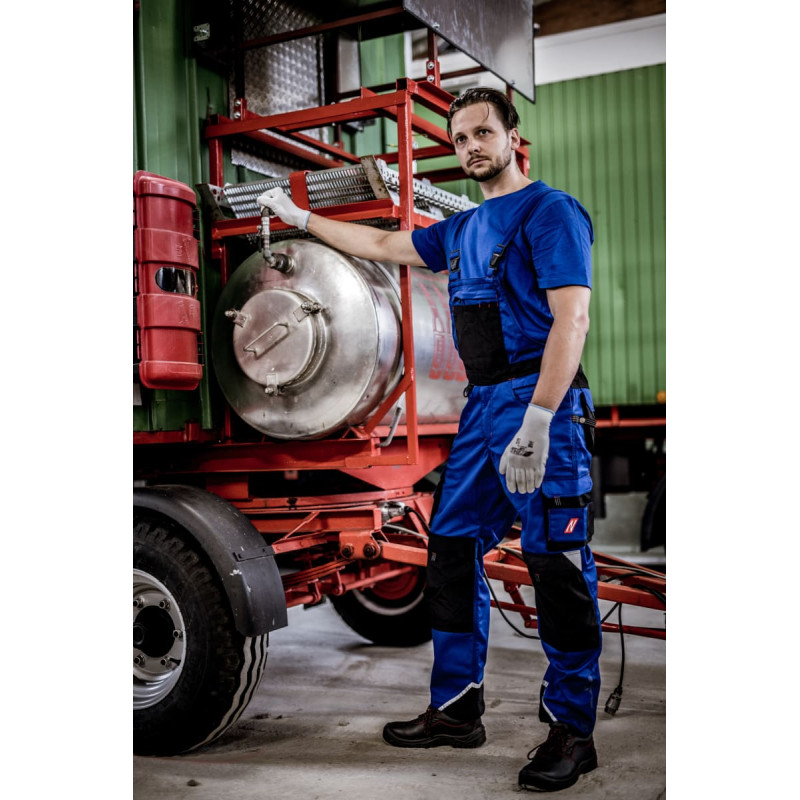 NITRAS MOTION TEX PRO FX, bib pants, royal blue / black (colour code: 2010), 280 g/sqm, breathable material, very high wearing comfort (2-way stretch), elastic waist, reinforcements in crotch and reinforcements made of CORDURA® on the leg, knee and back pockets as well as outside bib pocket and ankles, durable triple-stitched seams, 3M Scotchlite™ Reflective Material for better visibility, versatile and practical equipped: thigh pockets with flaps, ruler pocket, bib inside pocket with YKK-zipper and additional outside pockets, knee pockets for protectors with insertion from above, adjustable hammer loop, D-ring, ID pocket, durable clips, elastic straps, premium quality, OEKO-TEX STANDARD 100®, Comfort Fit, tool pockets 770P and knee protectors 76K (EN 14404) optionally available