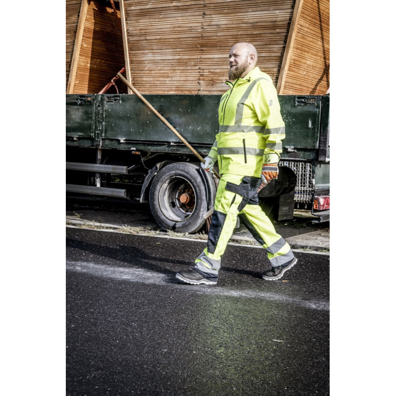 NITRAS MOTION TEX VIZ, high-visibility windbreaker, neon yellow (colour code: 4000), 180 g/sqm, very light-weight and high wearing comfort thanks to soft softshell material with water repellent and wind resistant properties, elastics at cuffs for optimal fit, decent and sporty design, comfortable lining inside (front side), small pack size and very quickly at hand, circumferential segmented reflective stripes for better visibility, continuous YKK-zipper with chin protection and wind stopper inside, chest and side pockets, hood with drawstring for fixation, Shell fabric: hydrostatic head: 25,000 mmH2O / breathability: 2,000 g/sqm/24h, Regular Fit
