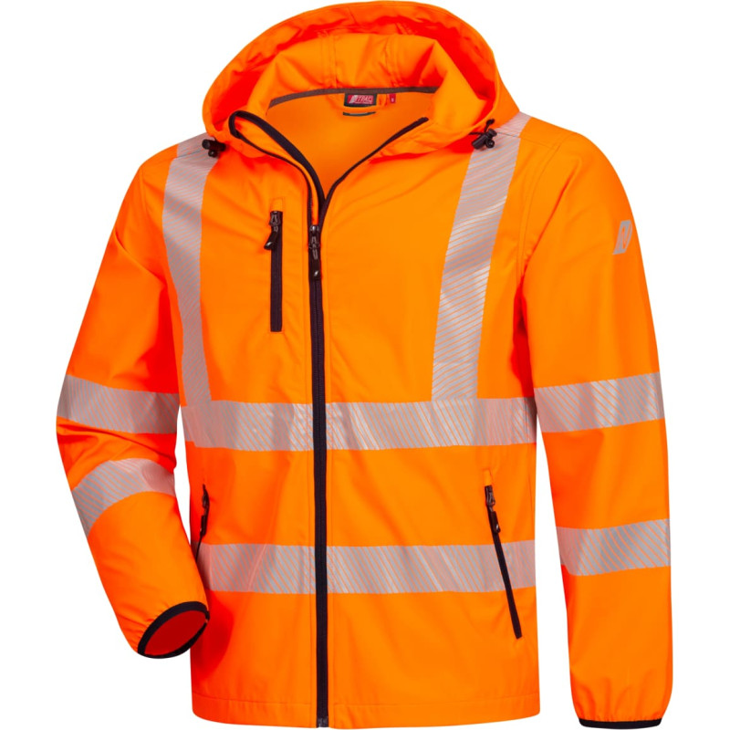 NITRAS MOTION TEX VIZ, high-visibility windbreaker, neon orange (colour code: 4100), 180 g/sqm, very light-weight and high wearing comfort thanks to soft softshell material with water repellent and wind resistant properties, elastics at cuffs for optimal fit, decent and sporty design, comfortable lining inside (front side), small pack size and very quickly at hand, circumferential segmented reflective stripes for better visibility, continuous YKK-zipper with chin protection and wind stopper inside, chest and side pockets, hood with drawstring for fixation, Shell fabric: hydrostatic head: 25,000 mmH2O / breathability: 2,000 g/sqm/24h, Regular Fit