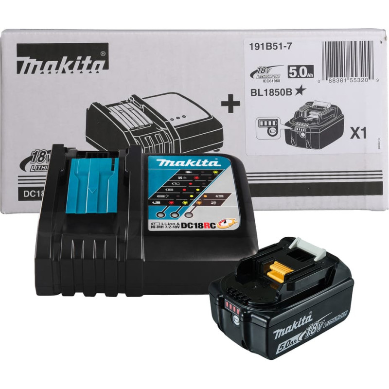 LXT® • 18V max • Li-ion • LXT® 5,0Ah akumulators un ātrais lādētājs • Ērts lādēšanas komplekts LXT® 18V max instrumentiem, kas sastāv no viena 5,0Ah Li-ion akumulatora ar uzlādes līmeņa indikatoru un ātrā lādētāja, kas uzlādē 5,0Ah akumulatoru 45 minūtēs.