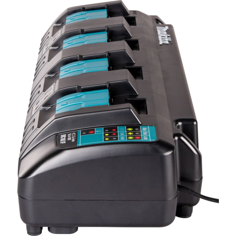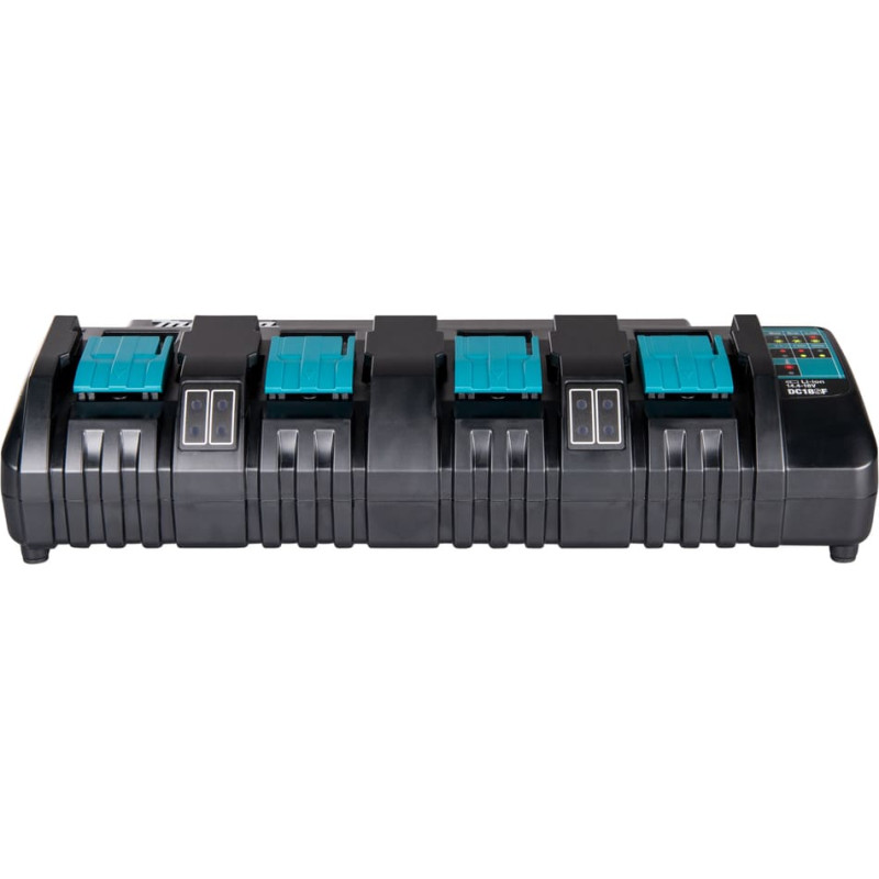 14.4V / 18V • DC18SF • Lādētājs četriem LXT® 14.4V vai 18V akumulatoriem • Lādētājs četriem 14,4 V vai 18V LXT® iebīdāmajiem akumulatoriem. Aprīkots ar dzesēšanas ventilatoru, kas nodrošina akumulatora dzesēšanu, tādējādi paātrinot uzlādi. Uzlāde tiek optimizēta atbilstoši spriegumam, strāvas apjomam un temperatūrai. Nodrošina divu akumulatoru vienlaicīgu uzlādi, četrus 3,0Ah akumulatorus uzlādē 120 minūšu laikā.