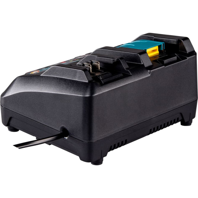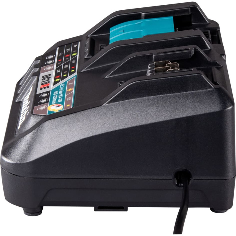 12V max / 18V • DC18RE • Ātrais lādētājs divu akumulatoru veidu vienlaicīgai lādēšanai • Ātrās uzlādes lādētājs iebīdāmajiem 18V LXT® un 12V MAX CXT® akumulatoriem. Uzlādes laiks ir 15-60 minūtes atkarībā no akumulatora kapacitātes. Aprīkots ar dzesēšanas ventilatoru, kas nodrošina akumulatora dzesēšanu, tādējādi paātrinot uzlādi. Uzlāde tiek optimizēta atbilstoši spriegumam, strāvas apjomam un temperatūrai. Uzlādē akumulatorus to pievienošanas secībā.