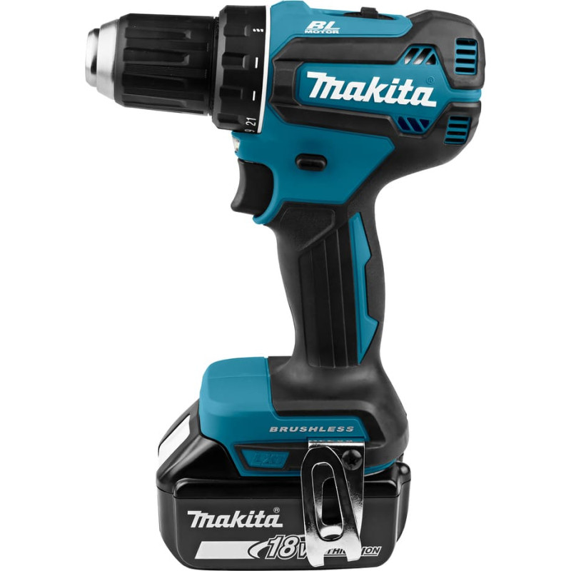 18V • 50Nm • 0-1900min-1 • Jaudīga un plaši pielietojama urbjmašīna/skrūvjgriezis ar BL motoru • Jaudīgs bezsuku instruments ar diviem ātruma režīmiem profesionāla līmeņa skrūvju skrūvēšanas un urbšanas darbiem. Maks. griezes moments ― 50/25 Nm. Universāls instruments montieriem, būvniekiem un remontdarbiniekiem. Iebūvēts LED apgaismojums. Divi 5,0 Ah akumulatori un ātrās uzlādes lādētājs Makpac koferī.