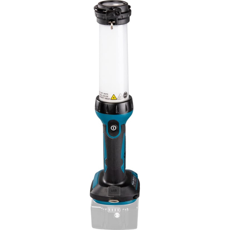 14.4V / 18V • 1900lx • Spilgts lukturis ar trīs apgaismošanas režīmiem un USB pieslēgvietu • 14,4 V un 18 V LXT® akumulatora lukturis ar trīs apgaismošanas režīmiem un USB pieslēgvietu. 360° apgaismošanas leņķis padara lukturi ideāli piemērotu vispārīgam pielietojumam. Cilindrveida galva ir aprīkota ar 20 LED diodēm. Vienu augšdaļā izvietoto diodi iespējams izmantot atsevišķa darba izgaismošanai. Darbības laiks, izmantojot 4,0 Ah akumulatoru, ir aptuveni 10-57 stundas. Tikai instruments, komplektācijā neietilpst akumulators un lādētājs.
