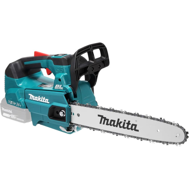 18V X2 • 20m/s • 350mm/14" • Ķēdes zāģis ar augšējo rokturi, ar BL motora ārējā rotora tiešās piedziņas sistēmu, kas nodrošina maksimālu darbības produktivitāti! • Pretatsitiena un elektriskā bremze maksimālai operatora drošībai. Griezes momenta palielināšanas režīms (ķēdes ātrums 0-20 m/s) ļauj nogriezt resnus zarus. Z-versija – bez baterijām un lādētāja!