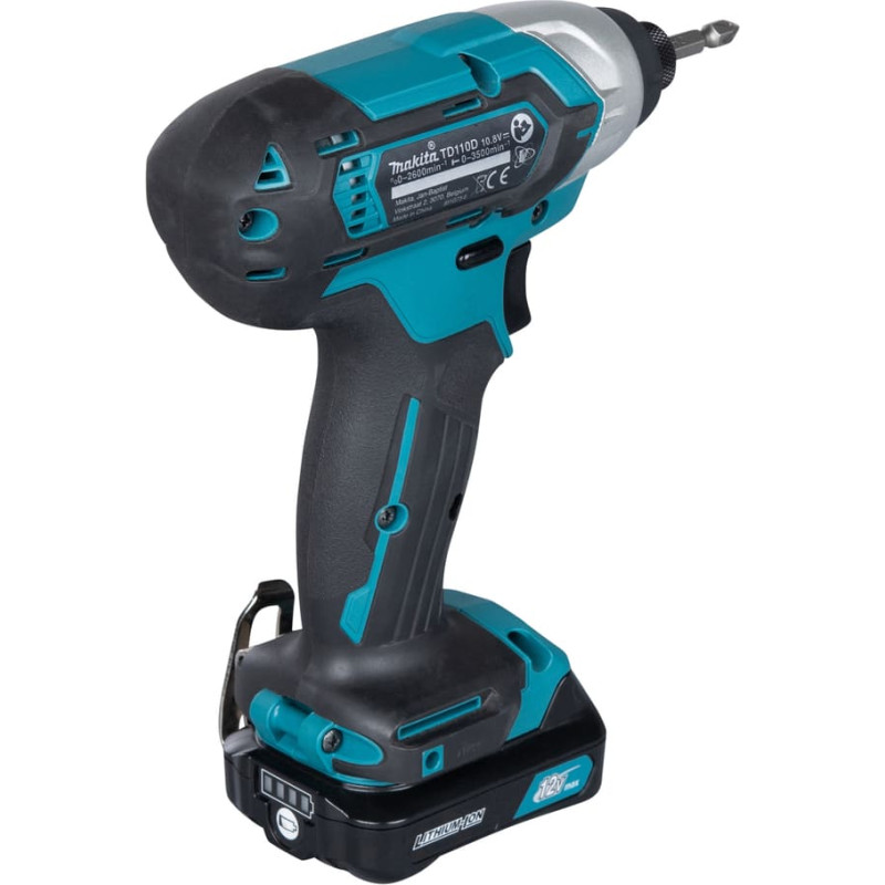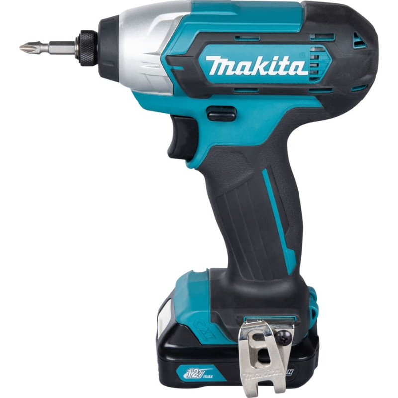12Vmax • 1/4" • 110Nm • 0-2600min-1 • Kompakts trieciena skrūvgriezis šaurām vietām • Kompakta un viegla trieciena skrūvgriezis ar 1/4 collas sešstūrveida spīļpatronu. Maza izmēra, viegls un ērti lietojams instruments, kas nodrošina augstu, līdz pat 110 Nm, pievilkšanas griezes momentu. Parocīgs LED apgaismojums papildu gaismai. Divi 2,0 Ah akumulatori un lādētājs Makpac koferī.
